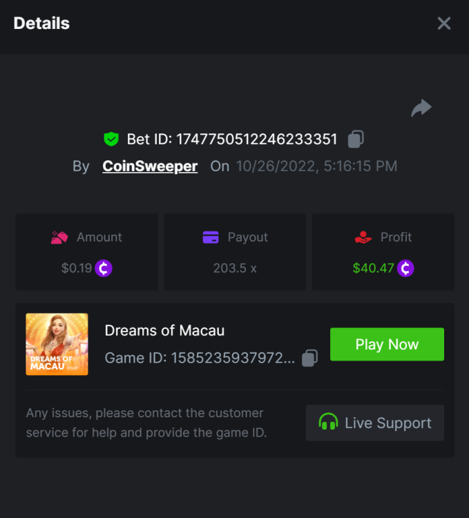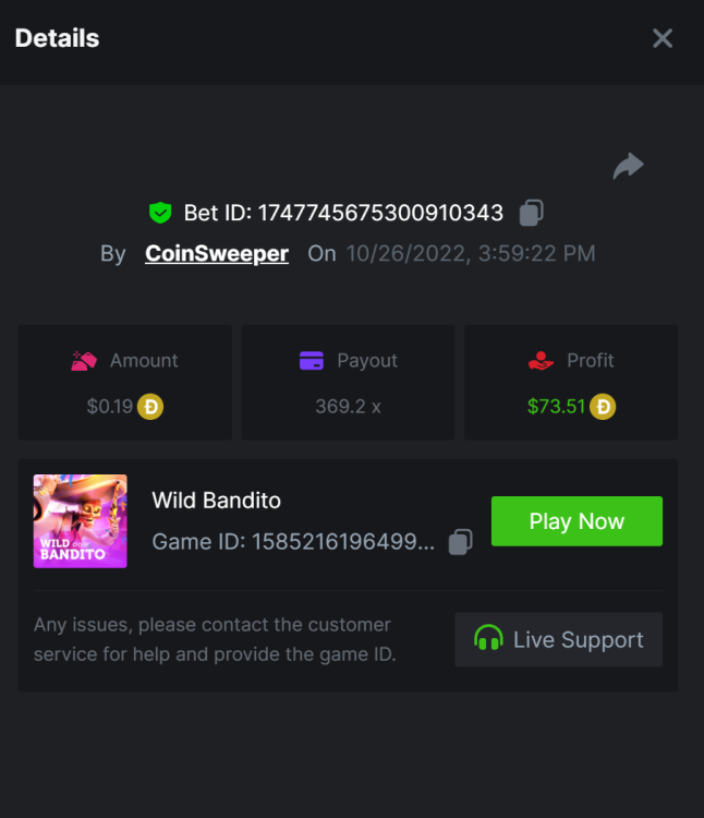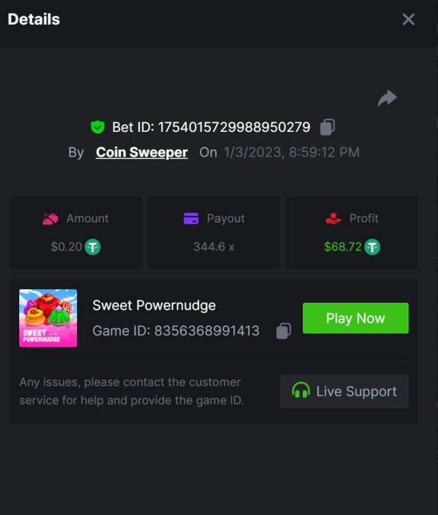 7. hot volcano - https://bc.game/sd/?sd=10SYOIO7ZEO93N - 1513.15x Bet ID: 1743939335900390528 camno de chilli - https://bc.game/sd/?sd=10SYQ0QXTML2QB - 70 x Bet ID: 1743940869443623431 candy 100x - https://bc.game/sd/?sd=10SYQGYJ50T3BN Bet ID: 1743941303908381191 Wolf Hiding - Bet ID: 1743934738919953597 - 500.20x https://bc.game/sd/?sd=10SY237RTTWDfN