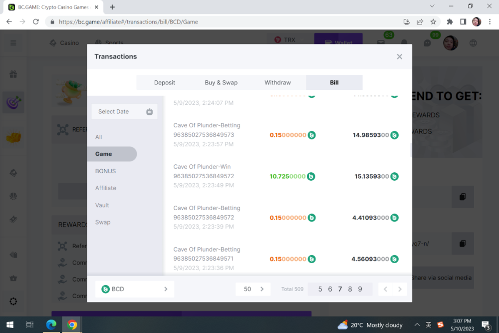 https://bc.game/#/sd/119B2BPPVVJBWZ Bet ID: 96385027536849814 The above is the bet as required. I did not realize you wont able to get link of the bet after 40 hands, thats why I did not have a chance to get the link for my highest winning 71.5X 's link, here is a screenshot of the game record and game ID if that works, If not, plz just use the link on top with the link pasted. Thanks. Cave Of Plunder-Win 96385027536849572 -