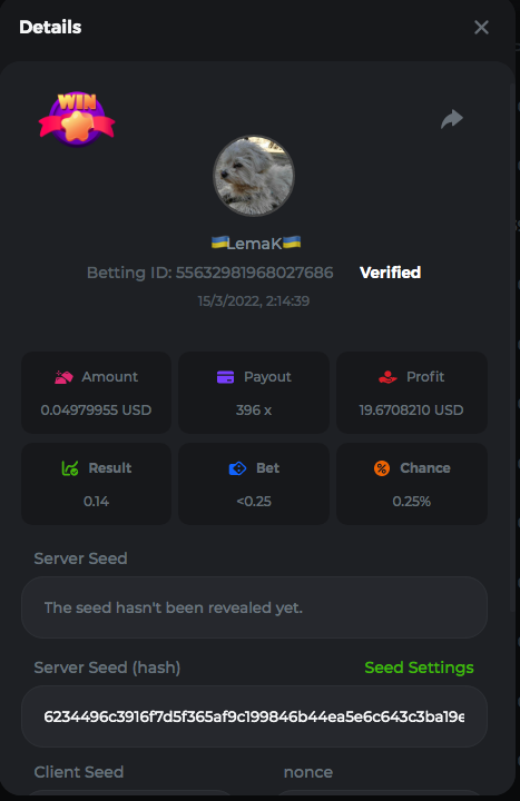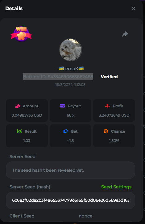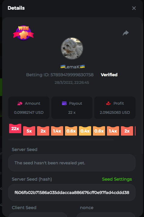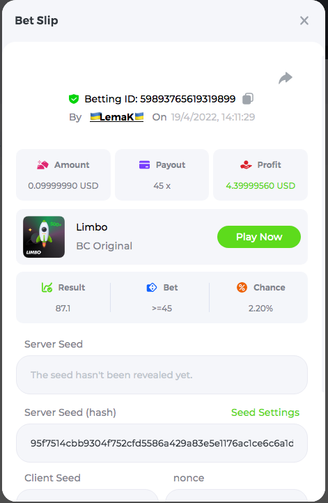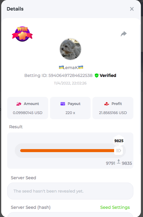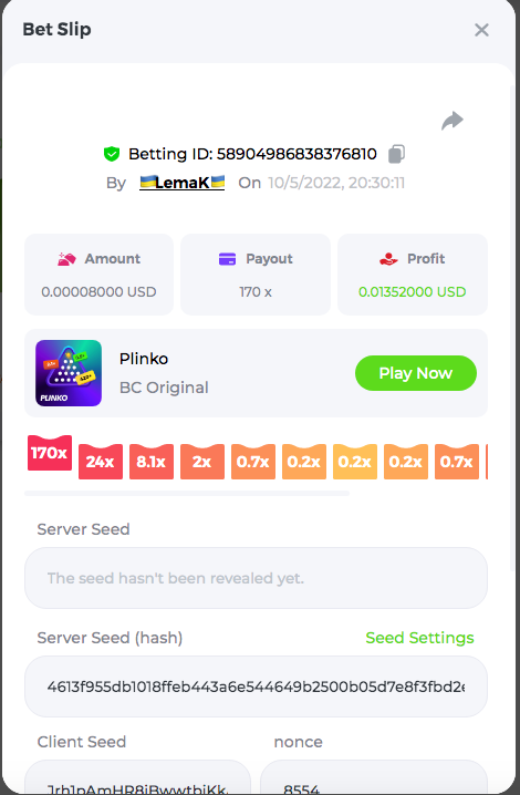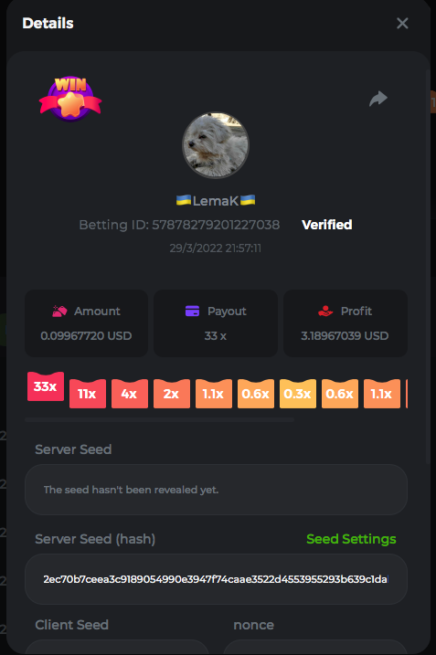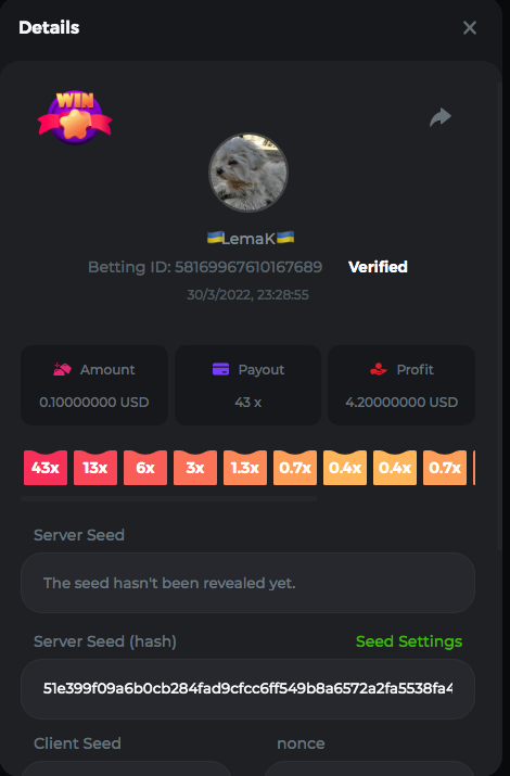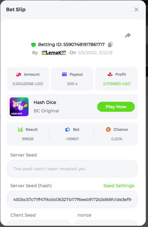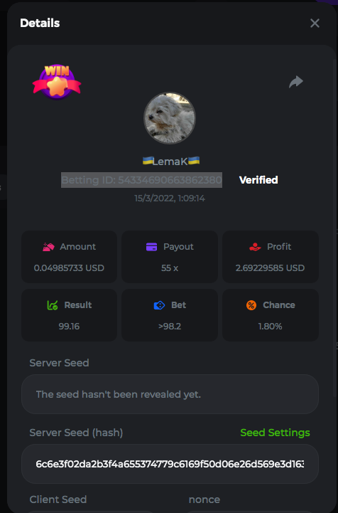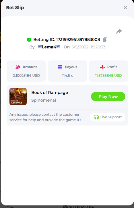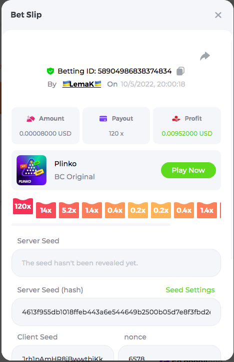 3.96x | 17.10x | 48x | 50x | 81.50x | 100x | 180x | 259x | 350x | 400x | 450x | 500x | 710x 3, 96X Bet ID: 64299452877242664 https://bc.game/sd/?sd=10KDY3OZQJJ3F7 17,10X Bet ID: 64299452877242675 https://bc.game/sd/?sd=10KDYBBI1S5T03 48X Bet ID: 64299452877242838 https://bc.game/sd/?sd=10KDZ8194K8ZRN 50X Bet ID: 64299452877242966 https://bc.game/sd/?sd=10KDZY8HO8V7YR 81.5X Bet ID: 64368069274763513 https://bc.game/sd/?sd=10KE2FNI28NYMR 100X Bet ID: 64373068616696117 https://bc.game/sd/?sd=10KE5W9412IUXF 180x Bet ID: 64373068616696401 https://bc.game/sd/?sd=10KE7K7H2FDO9F 259X Bet ID:64379850370056741 https://bc.game/sd/?sd=10KF9J9RDL85JN 350X Bet ID: 64435044994777133 https://bc.game/sd/?sd=10KFEPQDNCTRTF 400X Bet ID: 64437875378225669 https://bc.game/sd/?sd=10KFIYNK645HCJ