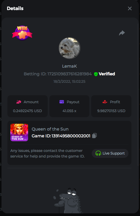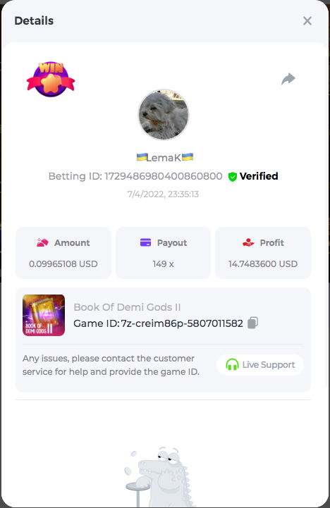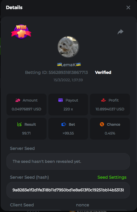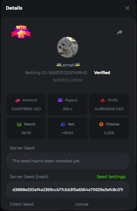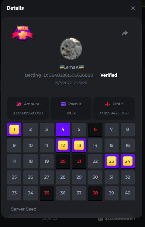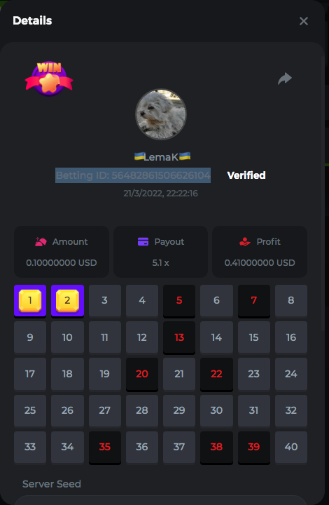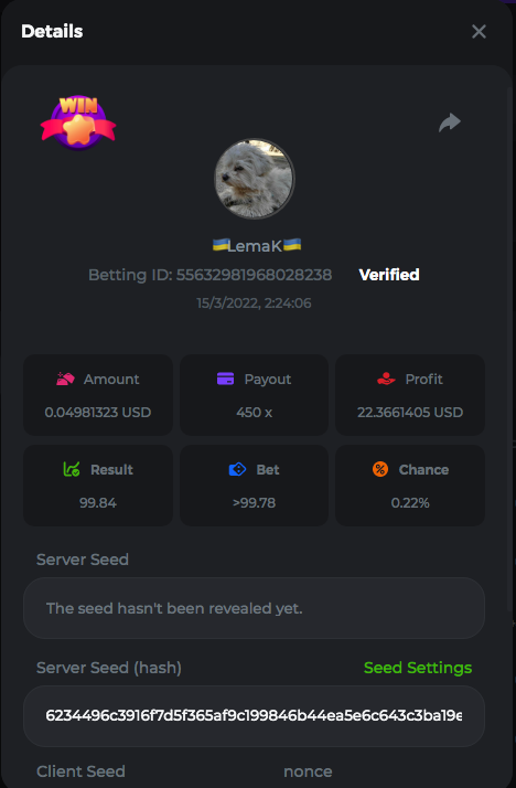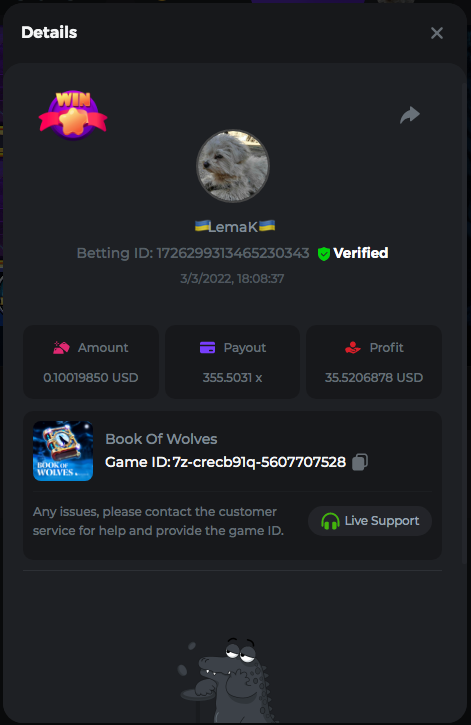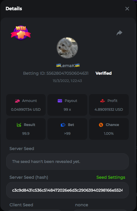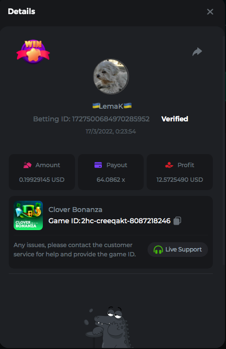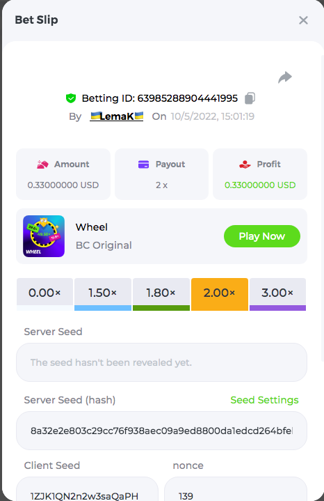 3.96x | 17.10x | 48x | 50x | 81.50x | 100x | 180x | 259x | 350x | 400x | 450x | 500x | 710x 3, 96X Bet ID: 64299452877242664 https://bc.game/sd/?sd=10KDY3OZQJJ3F7 17,10X Bet ID: 64299452877242675 https://bc.game/sd/?sd=10KDYBBI1S5T03 48X Bet ID: 64299452877242838 https://bc.game/sd/?sd=10KDZ8194K8ZRN 50X Bet ID: 64299452877242966 https://bc.game/sd/?sd=10KDZY8HO8V7YR 81.5X Bet ID: 64368069274763513 https://bc.game/sd/?sd=10KE2FNI28NYMR 100X Bet ID: 64373068616696117 https://bc.game/sd/?sd=10KE5W9412IUXF 180x Bet ID: 64373068616696401 https://bc.game/sd/?sd=10KE7K7H2FDO9F 259X Bet ID:64379850370056741 https://bc.game/sd/?sd=10KF9J9RDL85JN 350X Bet ID: 64435044994777133 https://bc.game/sd/?sd=10KFEPQDNCTRTF 400X Bet ID: 64437875378225669 https://bc.game/sd/?sd=10KFIYNK645HCJ